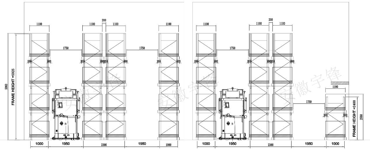 本項目涉及2個正負極立體庫,1000個貨位,使用智能倉儲裝備系統利用高層貨架儲存貨物,投入宇鋒智能4臺激光導航三向叉AGV,額定載重1000KG,貨架之間最小堆垛通道預留1900mm,整車車身1500mm,貨箱兩邊各突出100mm,,在實際操作空間僅有200mm的巷道內完成三向旋轉,進行5000mm高度貨位的滿載自動高密集存儲作業(見圖1),面對有限的堆垛空間及多點位的密集搬運,客戶最開始并未考慮使用叉車式AGV,采用堆垛機是客戶理想化的選擇,但因堆垛機的特性,客戶需預留一層空間,實際貨架只能存放3層,庫容量減少了30%,并且這類設備只能在倉庫內運行,還需配備其他設備才能完成貨物的出入庫工作,而在機械運行時還會產生粉塵,直接影響電池品質,而選用窄巷道三向叉車agv,可預留4層貨架,減少占地面積,完美符合客戶預期的倉儲量,最大限度的完成整廠物流工作,在價格上也相對更具優勢,降低儲存成本。