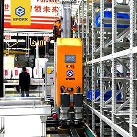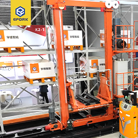 堆垛機:高架立體庫存取單元貨物的專用起重設備,在貨架之間的巷道內運行。堆垛機從結構上分為單立柱和雙立柱結構,貨叉有歐標貨叉和日標貨叉兩種,對應不同的托盤型式。對于非標貨物,可有特殊存取裝置與堆垛機進行模塊化組合。堆垛機可提高倉庫面積和空間利用率及倉儲系統作業效率,自動化程度高,減少人工干預。